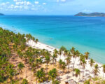 This perfect white sunset beach property has 32.94 meters of wide tropical white beachfront and backs to a concreted municipal road. The interior of this beach lot is flat with an easy slope planted with coconuts throughout. The property is positioned in the upper area of the popular tourist destination of San Vicente Long Beach which affords quiet and protected environments. The surrounding ocean has substantial coral reefs and Imuruan Island is ideal for swimming and water sports.